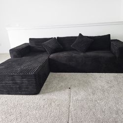 Black plush corduroy cloud sectional sofa. $600Parrish, FL