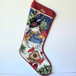 VTG 2002 Tapestry Stocking Snowman Cardinals Birdhouse MOM Embroidered$30St. Petersburg, FL
