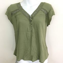 E Hanger M Olive Green V-Neck Short Sleeve Shirt Top Size M $10Sarasota, FL