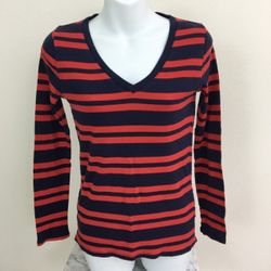 Merona Long Sleeve Striped Shirt V-neck Blue/Red Women’s Size S/P $10Sarasota, FL