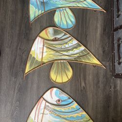 Vintage MCM Boho Hand Painted On Cotton With Bamboo Trim Fish$150Tampa, FL
