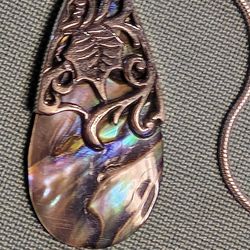 STERLING SILVER CAP, HOLDS A LARGE TEARDROP OF ABALONE. NATURAL BLUE AND GREEN HUES A BEAUTY Of A GEMSTONE OF THE SEA. STERLING 18 INCH CHAIN.$20Palmetto, FL