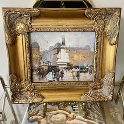 Vintage 8x10 Oil on Wood Board Reproduction Titled “Place de la République” in 13 1/2” H x 15 1/2” W Gold Ornate Frame$175St. Petersburg, FL