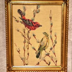 Antique Wool Bird Pair Crewel Needlepoint w/8x10 Vintage Gold Frame$50St. Petersburg, FL