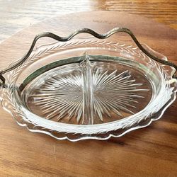 **VINTAGE** Jeanette Glass Divided Candy Dish w/Brass Accents - 5” x 8” x 5.5”$23Riverview, FL
