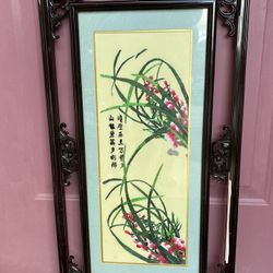 Oriental/ Asian Framed Decor/Art - Matted Green & Pink Floral Embroidery $20Riverview, FL