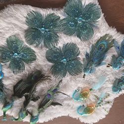 13 turquoise & green peacock ornaments w/ glitter & feathers. Adornos turquesa verde pavos reales perdería escarcha Plumas$49St. Petersburg, FL