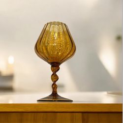 12” Amber Glass Art Goblet Chalice Cup Vase Bowl Swirl Ribbon Stem$40Bradenton, FL