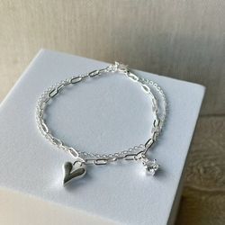 925 Sterling silver half tennis chain half cable chain heart charm bracelet$37Wimauma, FL