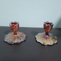 Imperial Glass Red Carnival Candle Holders Rose Pattern Marked$27Clearwater, FL