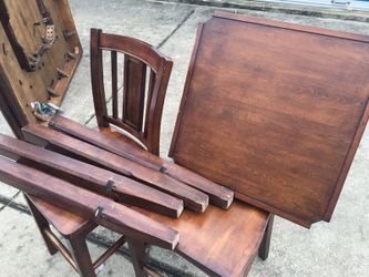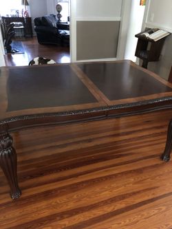 Two leafs and 4 chair 2 king and queen chairs table needs two screws excellent condition Victorian dining set$250Saint Petersburg, FL