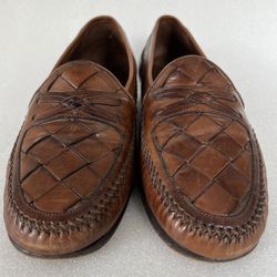 Johnson & Murphy woven Leather Loafer Brown dress shoes Size 8.5 Italy $50Sarasota, FL