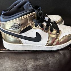 -Nike Air Jordan 1 Retro Mid SE GS Metallic Gold Black White DC1420-700 4.5Y (L)$200Ruskin, FL