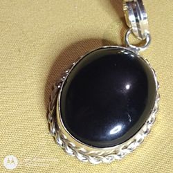 BEAUTIFUL BLACK ONYX BALI STERLING PENDANT. 20.20 G./ 30 MM. CABOCHON FOR MANY LITTLE BELOW: (P-6994)$20Palmetto, FL