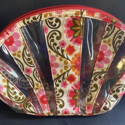 Vera Bradley-Make Up-Cosmetic-Toiletry Bag-Red, Clear & Pink Floral-Logo Zipper$20Myakka City, FL