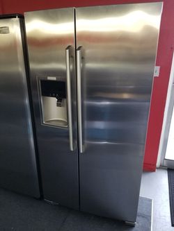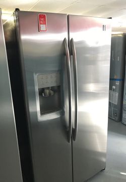 New scratch and dent GE 26cu.ft stainless steel side by side refrigerator 1 year warranty$699Saint Petersburg, FL