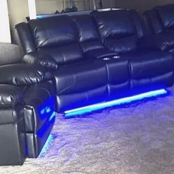 Black Leather Reclining Sofa Set w/ LED Lights - Excellent Condition$1,800Redington Shores, FL