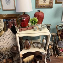 Vintage-Inspired Two Tier Off White / Cream Accent Table with Curved Legs Solid Oak Wood Shabby Chic$125Sarasota, FL