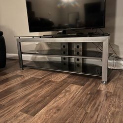 Tv Stand Glass & Metal Modern Contemporary Matte Gray Metal & Smoked Glass Great For Living Rooms, Family Rooms, Game Rooms, Great Condition!$20Sarasota, FL