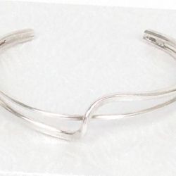 1980s Sterling Silver MED Bypass Bangle Bracelet, Signed TJ, Made in Poland