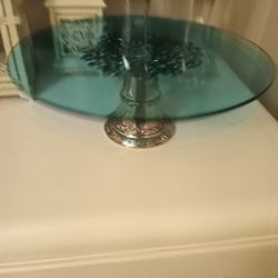 The cake stand unique! see silver and aqua blue crystal!$40Lakeland, FL