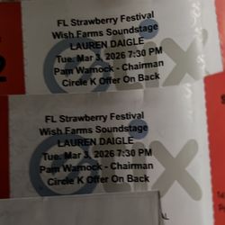 Florida Strawberry Festival LAUREN DAIGLE TICKETS TUESDAY MARCH 3rd …4 ROWS FROM THE STAGE$150Plant City, FL