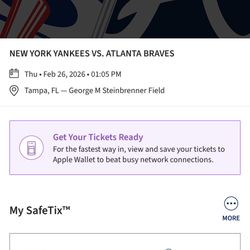 2 Tickets To Yankees vs. Braves Today, Thursday, 2/26/26$80Tampa, FL
