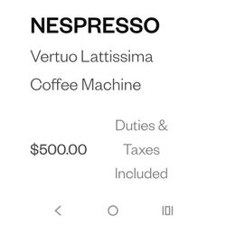 Nespresso Vertigo Lattissoma$250Safety Harbor, FL