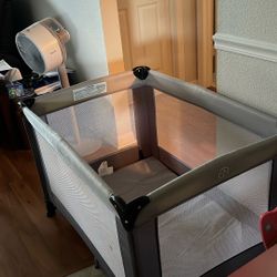 Pamo Babe Portable Crib Baby Playpen with Mattress and Carry Bag Grey
