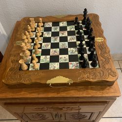 Antique Asian Chess Board Game Set Carved Dragon Wood Case Inlaid Tile$250Tampa, FL