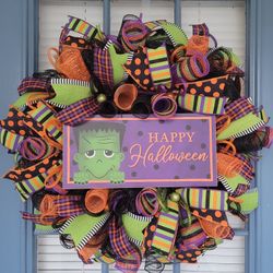 Happy Halloween Wreath, Colorful Frankenstein Wreath, Whimsical Halloween Wreath $50Valrico, FL
