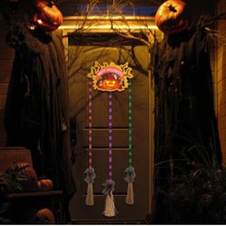 Halloween Witch Broom Decoration,Happy Halloween Sign with 3 Wooden Witches Brooms,Rope Pumpkin Lights Decor With ghost and Witch's Hat for Porch Wall$10Palm Harbor, FL