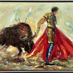 MID-CENTURY OIL ON CANVAS - BULLFIGHTING SCENE$100St. Petersburg, FL
