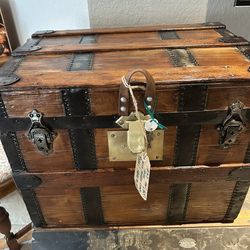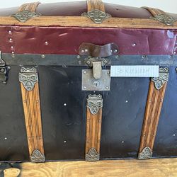 Beautiful 1880s Victorian Era Antique Cross Slat Barrel Top Trunk$125St. Petersburg, FL