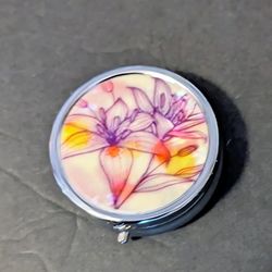 Pill Trinket Jewelry Storage Travel Box Flower Mirror Lavender Purple White NWOT $10Brandon, FL