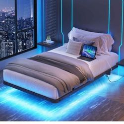 Twin Bed Frame LED Lights Charging Station Floating Platform Bed Black$95Valrico, FL