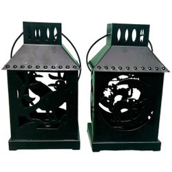 Set of Two Metal Halloween Tealight Candle Lanterns Raven Cat Moon$25Tampa, FL