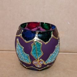 Candle Holder Glass Purple Holly Leaves Stained Glass Design 3" Height 2.5" Width$8Brandon, FL