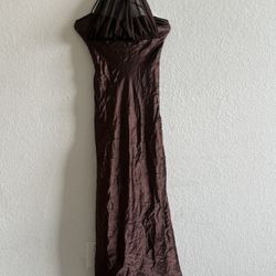 a dark brown, satin-finish halter maxi dress $15Lakeland, FL