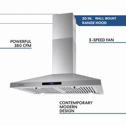 30in Wall Mount Range Hood Kitchen Stainless Steel 3-Speed Touch Panel$200Tampa, FL
