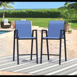 Outdoor Bar Stools Set of 2, 44'' Patio Bar Chairs with Textile High Back, Bar Height Chairs with Straight Armrest and Footrest, Blue$75Seffner, FL