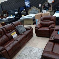 Going out of business sale. Santiago Brown, leather reclining sofa and loveseat set now $1099.. Easy finance option. Same-day delivery$1,099Lakeland, FL