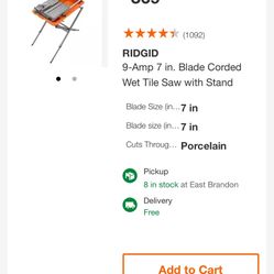 rigid 7in wet tile saw with stand$225Seffner, FL