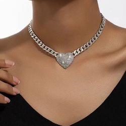 Pretty Blingy Heart Link Silver Tone Necklace $35Wesley Chapel, FL