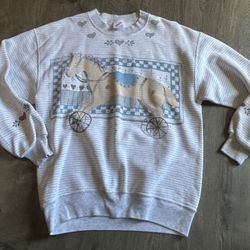 Vintage? JERZEES Horse On Wheels Hearts White And Grey Striped Sweatshirt Large$8Plant City, FL