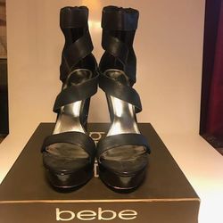 Bebe Black Leather Wedge Shoes$50Riverview, FL
