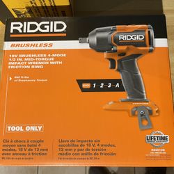 RIDGID 18V Brushless Cordless 4-Mode 1/2 in. High-Torque Impact Wrench 1300 Torque 4ah Batt Charger $350Lakeland, FL