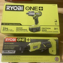 Ryobi 1/2 Impact Wrench And 3/8” Ratchet With 4 Ah Batt And Charger New $200 In N Lakeland $200Lakeland, FL