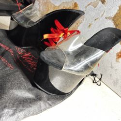 💎 Pleaser Black Platform Mules |Clear Strap & Red Ribbon Lace-Up |With Dust Bag$45Cape Coral, FL