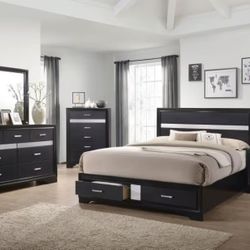 Miranda - 4 Piece Queen Platform Storage Bedroom Set - Black
